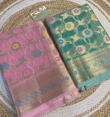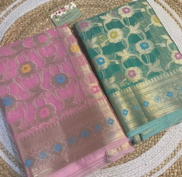 The handwoven silk adds a luxurious drape and timeless elegance, making them perfect for weddings, festivals, and special celebrations. With intricate borders and subtle sheen, each saree is a graceful celebration of Indian heritage and craftsmanship