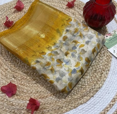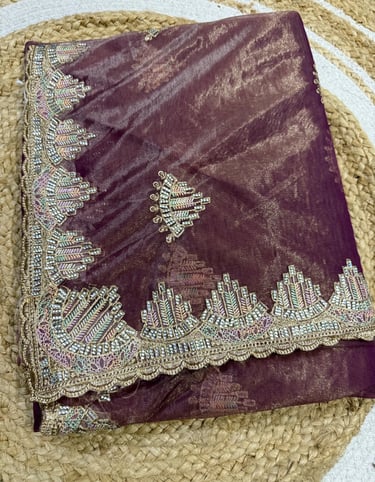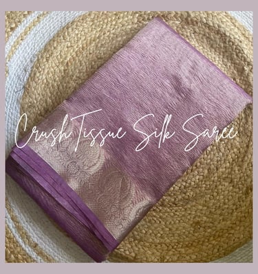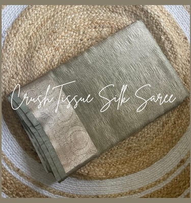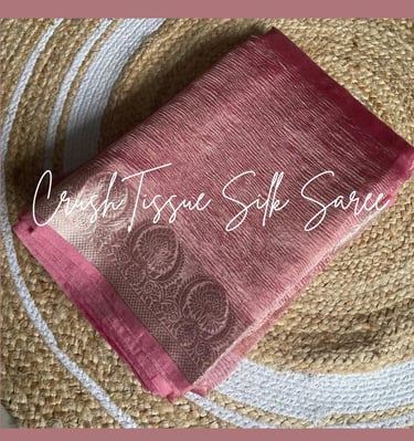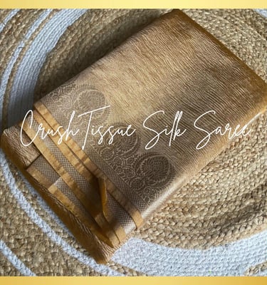 Make a statement with the unique charm of Crushed Tissue Sarees, known for their rich texture and luminous finish.